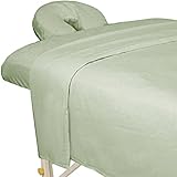 For Pro premium flannel sheet 3-piece set is premium 150 GSM 100% cotton. Set includes generous 63 inch x 100 inch size flat sheet, 36 inch x 77 inch x 7 inch fitted sheet and fitted face rest cover. Durable and long lasting for commercial use. Sage.
