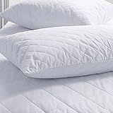 - SET OF 2 NEW STANDARD SIZE ZIPPERED QUILTED BED PILLOW PROTECTORS Each pillow protector measures 20" x 26" Face fabric is cotton and polyester blend The backing and fiberfill is 100% polyester Recover and protect your pillows (the bed pillows are not included) Add to your sleeping comfort Machine Washable
