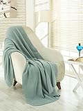 Good time offer Ottomanson Bed Blankets, Bedspread, Plush Cotton Throw, Soft Cotton Cozy Blanket Imported from Europe Waffle Solid Fleece Blanket, 50" W x 65'' L, Sage Green in USA